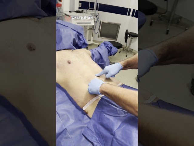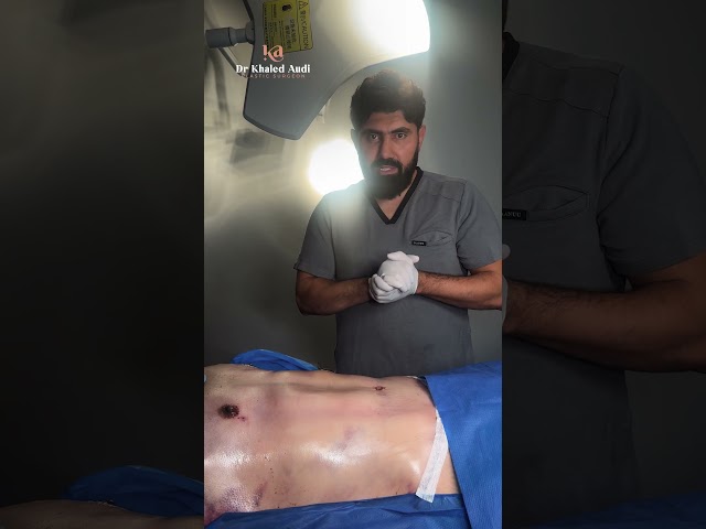 إزالة الدهون الزائدة ومعالجة التثدي، مع إبراز عضلات البطن بوضوح